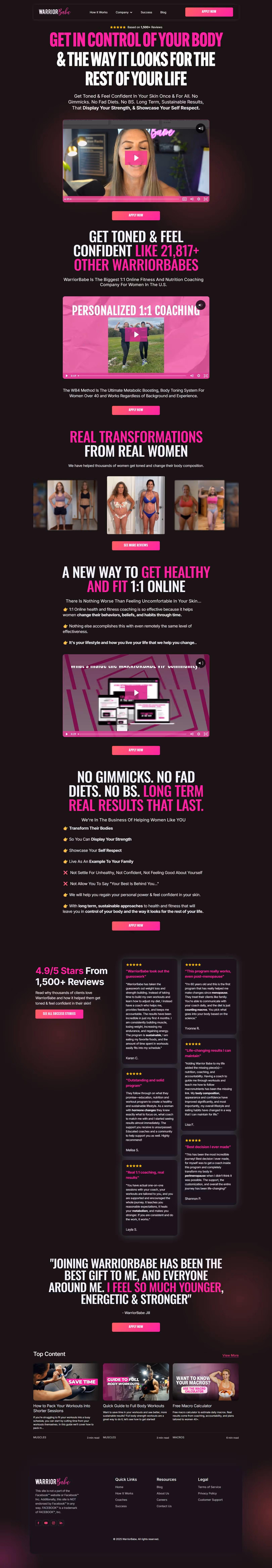 The redesigned site now reflects Warrior Babe’s mission with clarity and impact, guides prospective clients smoothly toward application and strengthens trust through visible results and community emphasis.